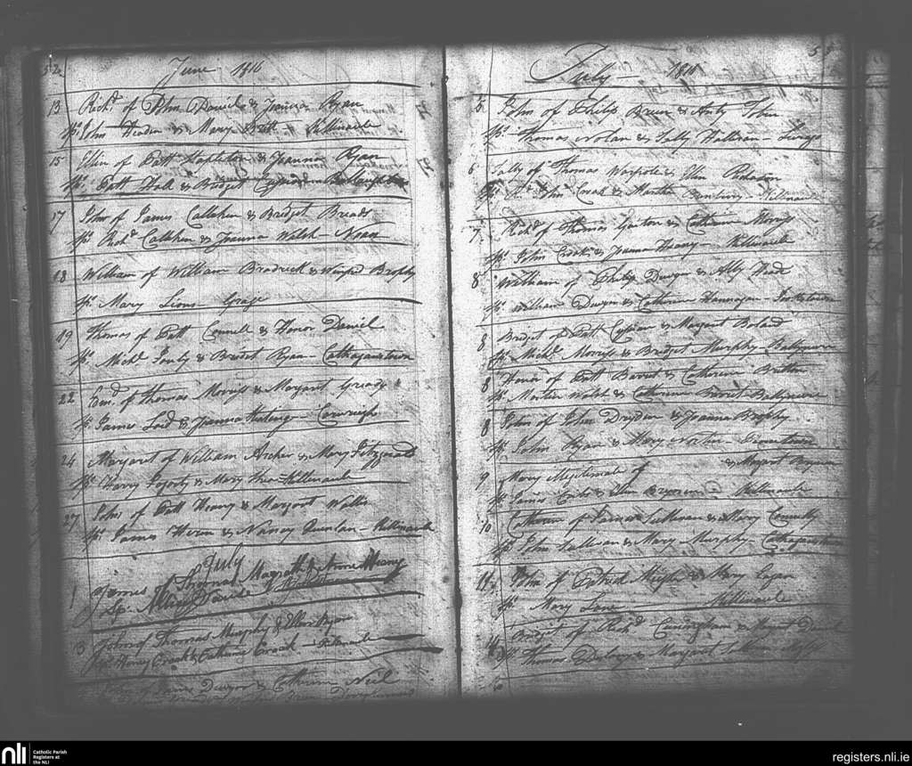 Killenaule; County of Tipperary; Diocese of Cashel and Emly. Baptisms, June 1816 to July 1816