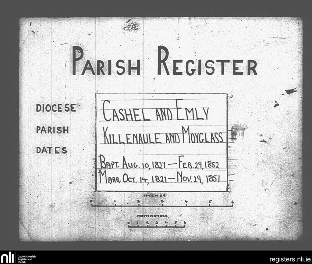 Killenaule; County of Tipperary; Diocese of Cashel and Emly. Baptisms, Marriages