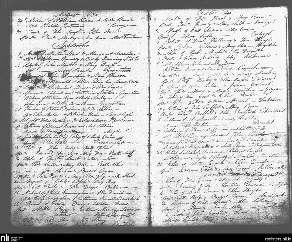 Killenaule; County of Tipperary; Diocese of Cashel and Emly. Baptisms, Aug. 1830 to Nov. 1830