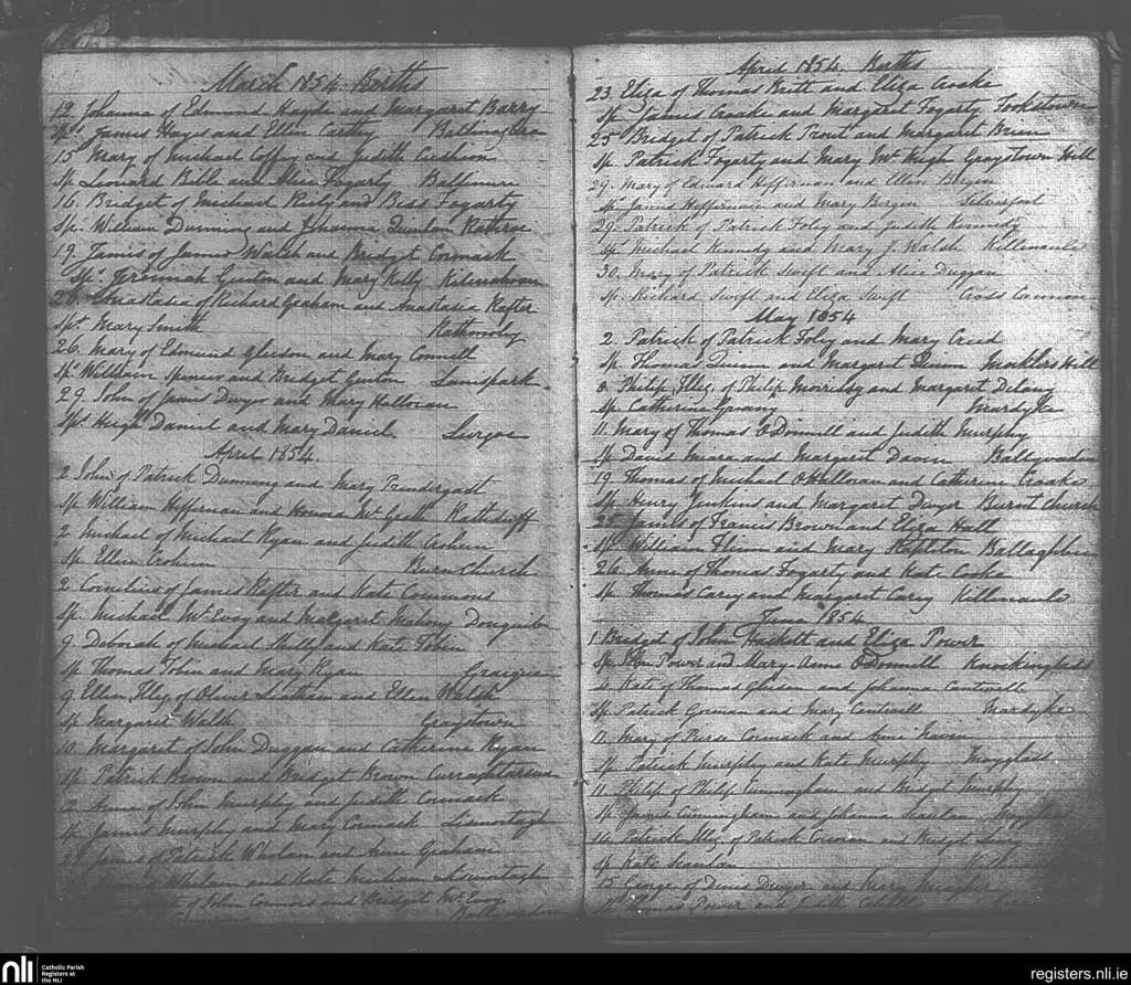 Killenaule; County of Tipperary; Diocese of Cashel and Emly. Baptisms, Mar. 1854 to June 1854