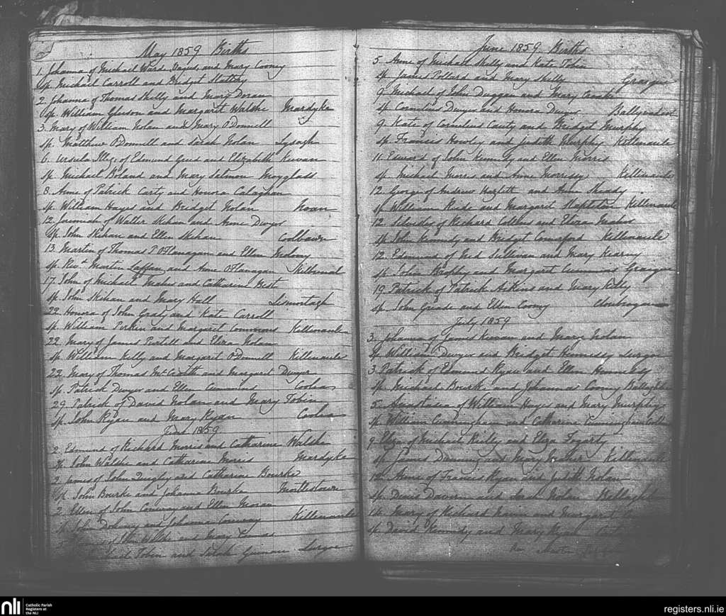 Killenaule; County of Tipperary; Diocese of Cashel and Emly. Baptisms, May 1859 to July 1859