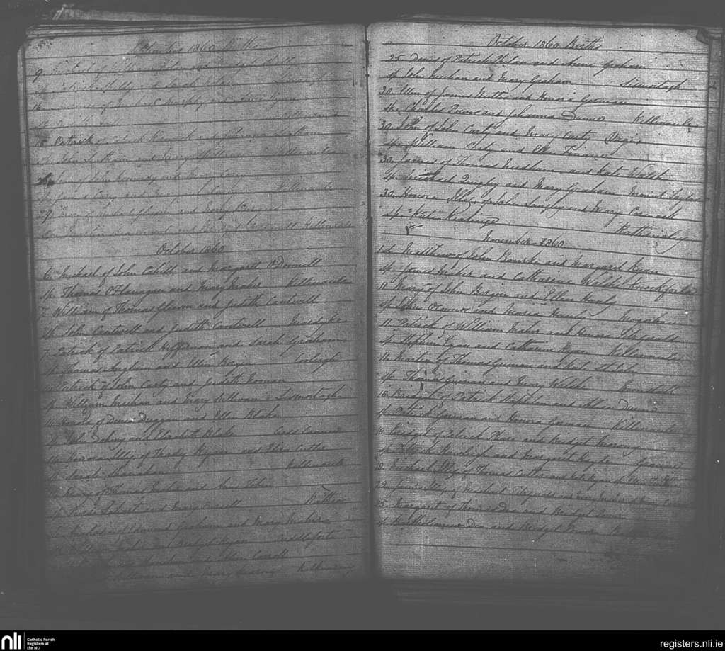 Killenaule; County of Tipperary; Diocese of Cashel and Emly. Baptisms, Sep. 1860 to Nov. 1860