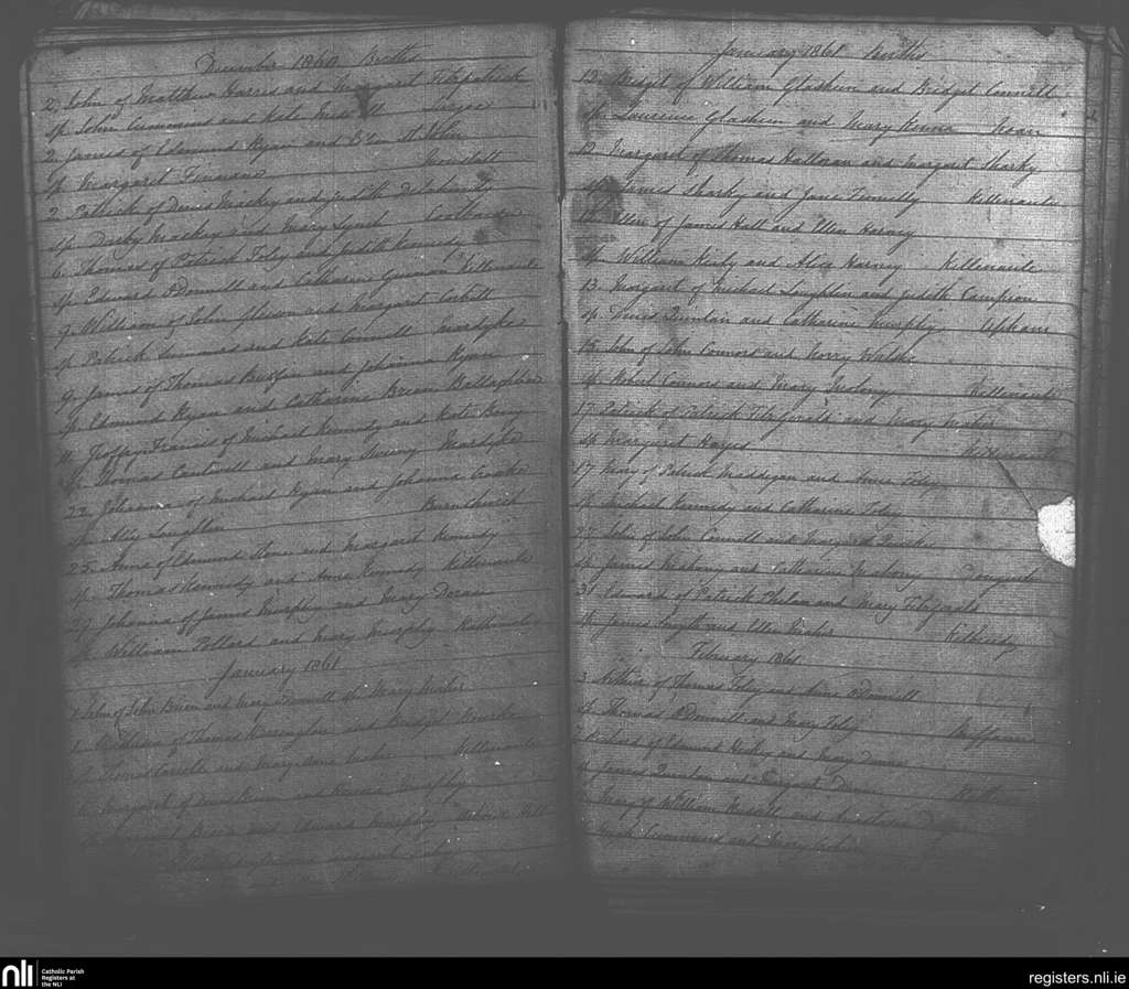 Killenaule; County of Tipperary; Diocese of Cashel and Emly. Baptisms, Dec. 1860 to Feb. 1861
