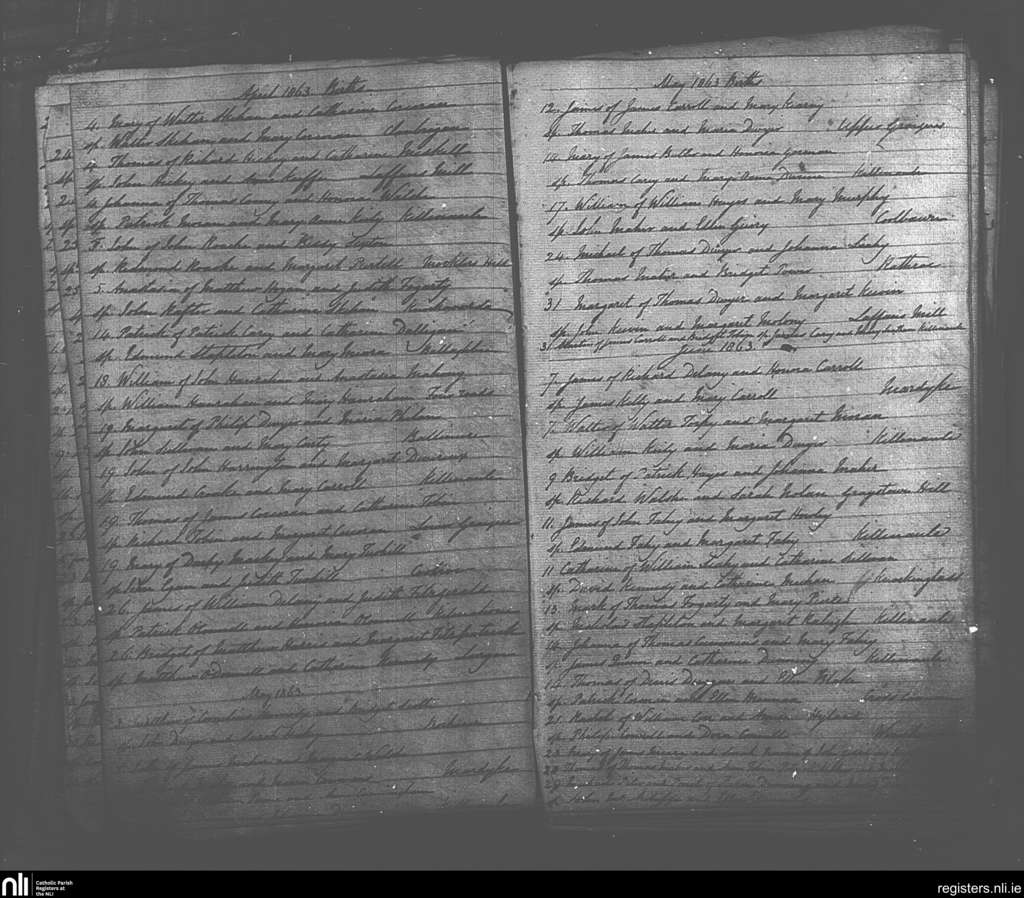 Killenaule; County of Tipperary; Diocese of Cashel and Emly. Baptisms, Apr. 1863 to June 1863