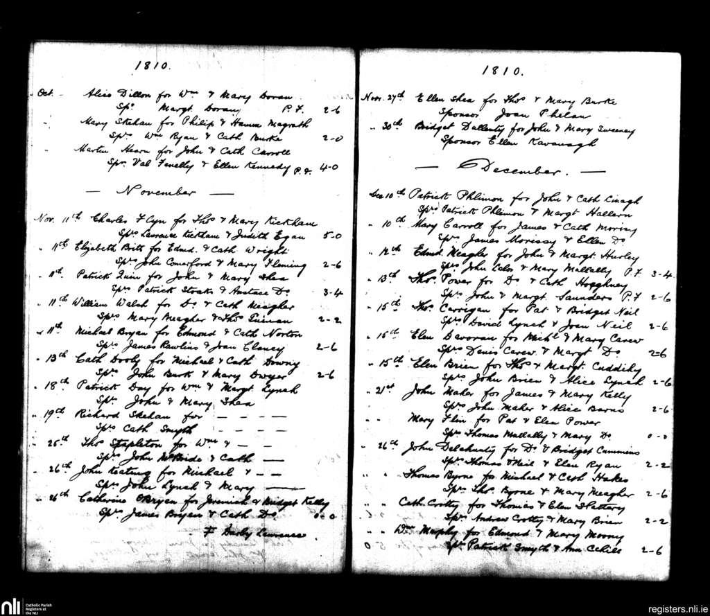 Mullinahone; County of Tipperary; Diocese of Cashel and Emly. Baptisms, Oct. 1810 to Dec. 1810