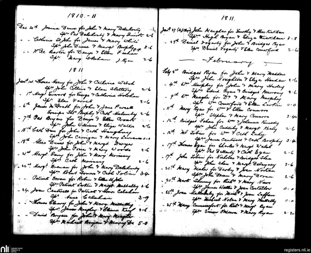 Mullinahone; County of Tipperary; Diocese of Cashel and Emly. Baptisms, Dec. 1810 to Feb. 1811