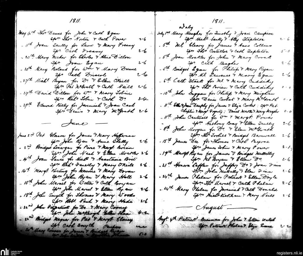 Mullinahone; County of Tipperary; Diocese of Cashel and Emly. Baptisms, May 1811 to Aug. 1811
