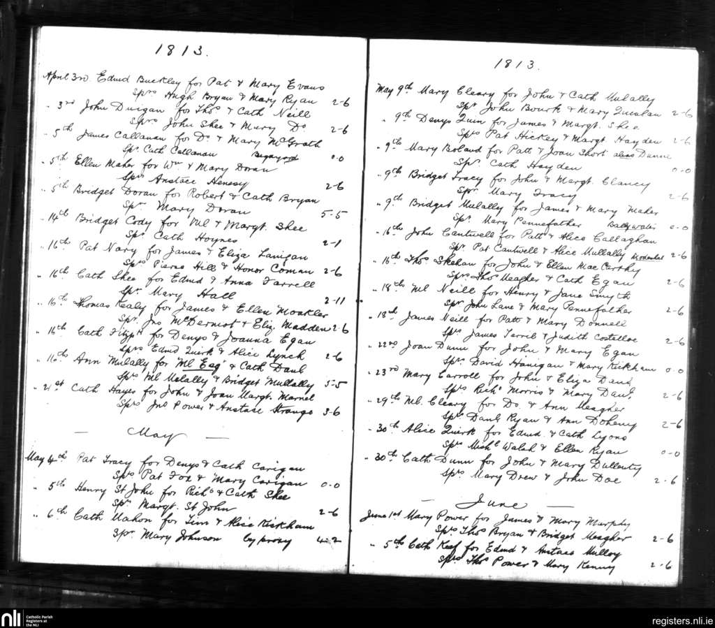 Mullinahone; County of Tipperary; Diocese of Cashel and Emly. Baptisms, Apr. 1813 to June 1813