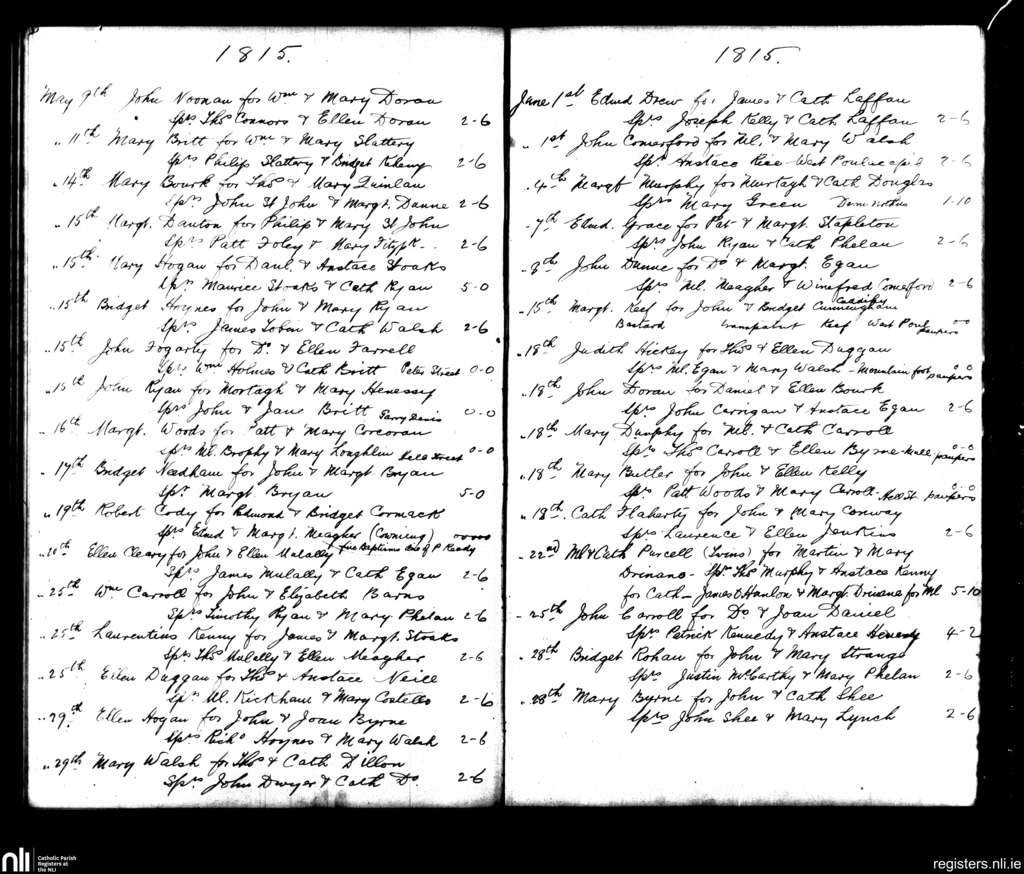 Mullinahone; County of Tipperary; Diocese of Cashel and Emly. Baptisms, May 1815 to June 1815