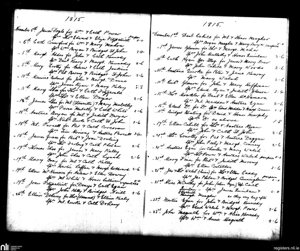 Mullinahone; County of Tipperary; Diocese of Cashel and Emly. Baptisms, Nov. 1815 to Dec. 1815
