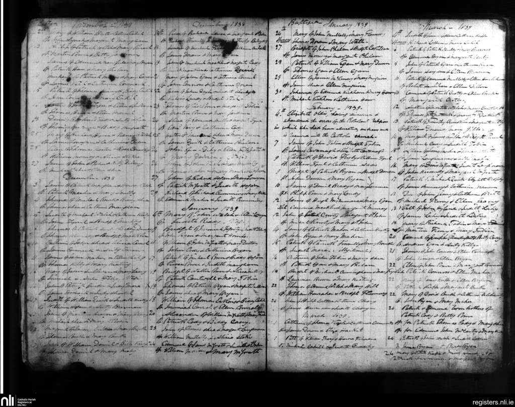 Mullinahone; County of Tipperary; Diocese of Cashel and Emly. Baptisms, Nov. 1838 to Mar. 1839