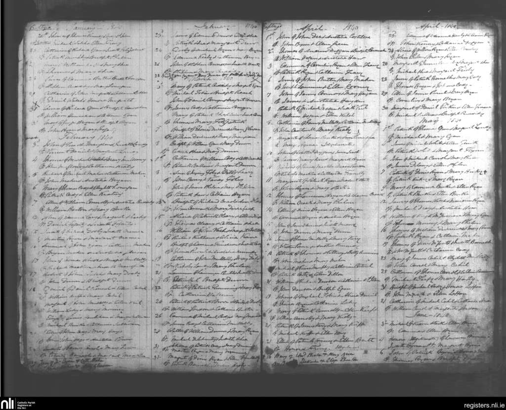 Mullinahone; County of Tipperary; Diocese of Cashel and Emly. Baptisms, Jan. 1840 to June 1840