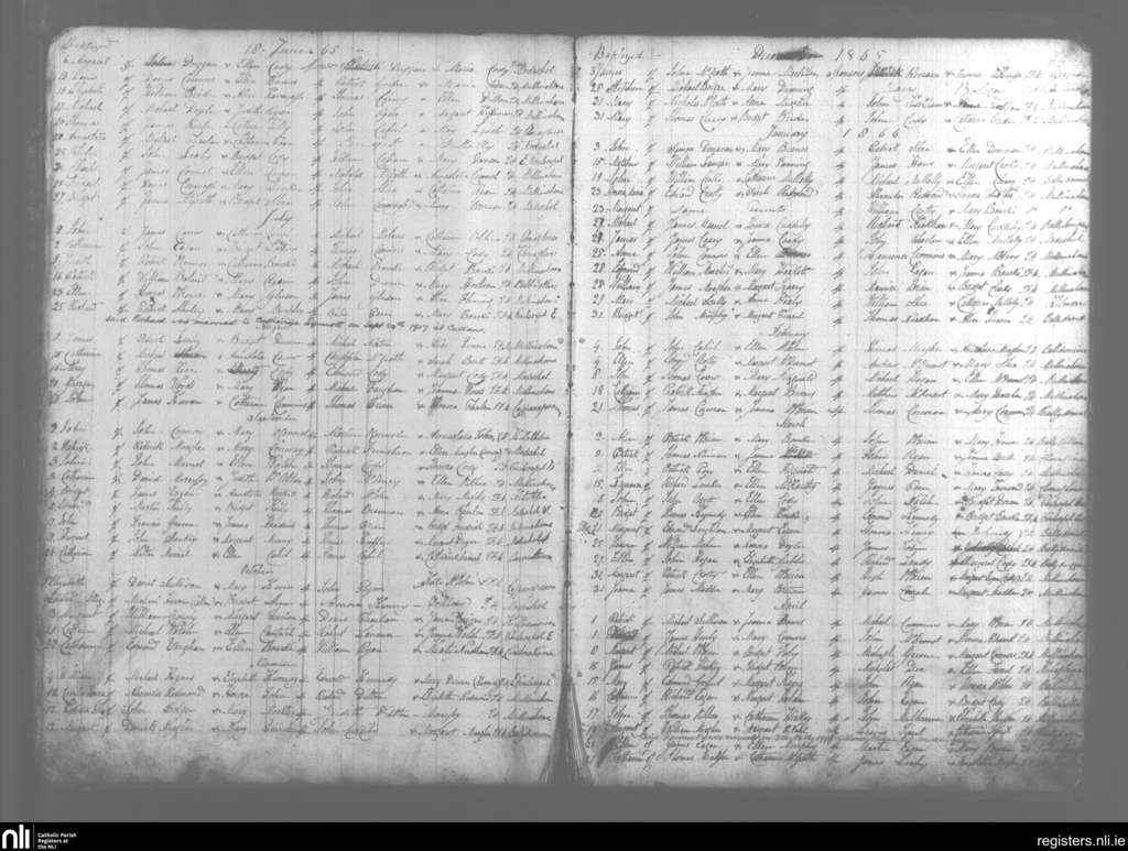 Mullinahone; County of Tipperary; Diocese of Cashel and Emly. Baptisms, June 1865 to Apr. 1866
