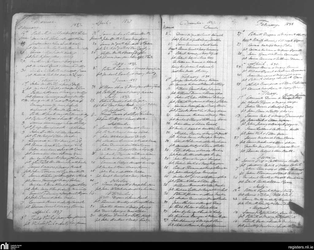 Mullinahone; County of Tipperary; Diocese of Cashel and Emly. Marriages, Jan. 1837 to Aug. 1838