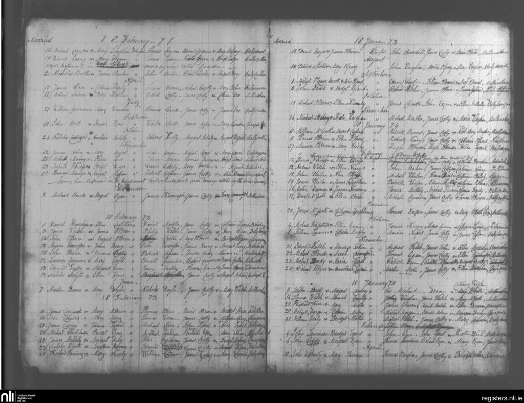 Mullinahone; County of Tipperary; Diocese of Cashel and Emly. Marriages, Feb. 1871 to Apr. 1875