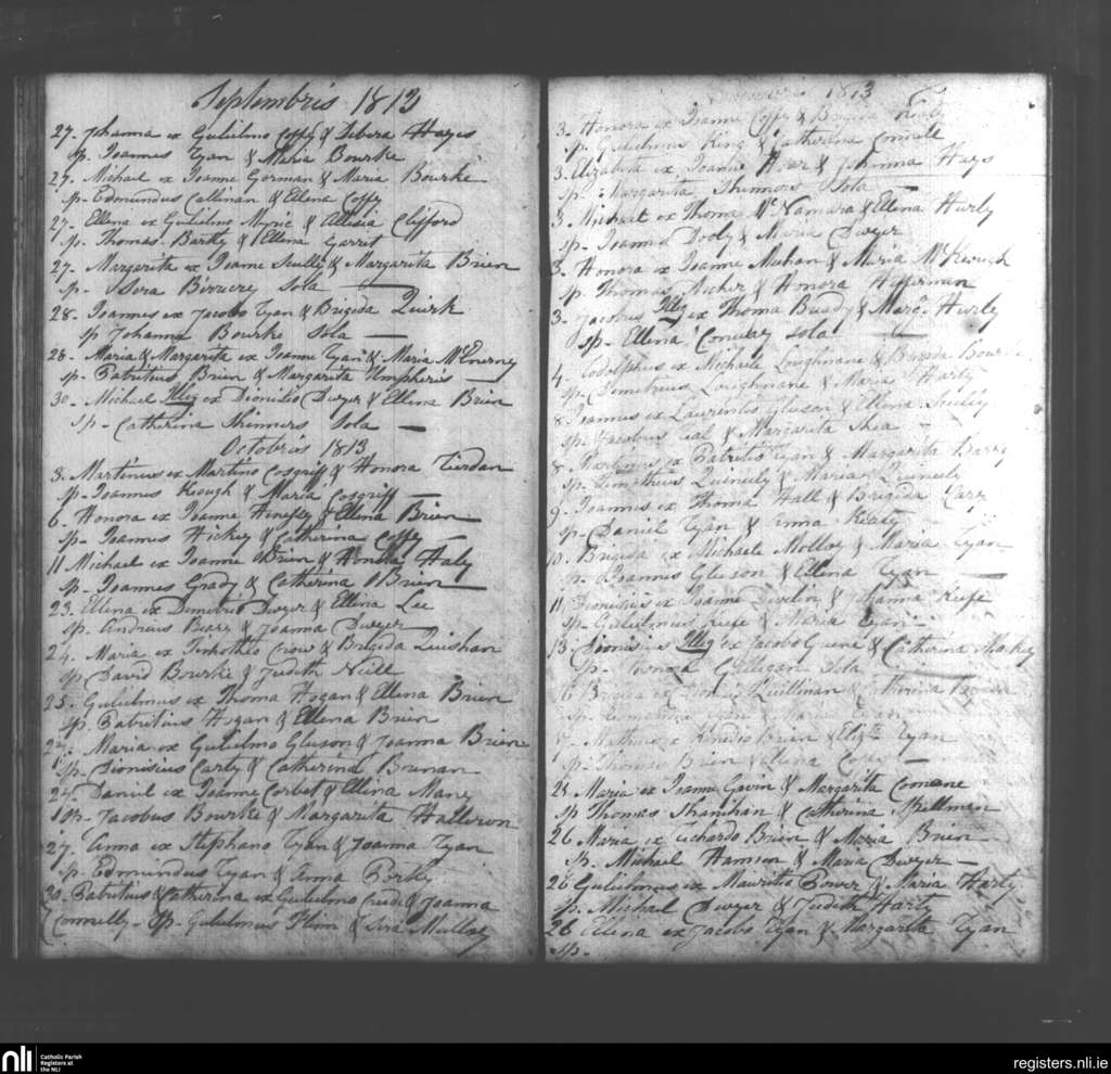 Pallasgreen and Templebredin; County of Limerick, Tipperary; Diocese of Cashel and Emly. Baptisms, Sep. 1813 to Nov. 1813