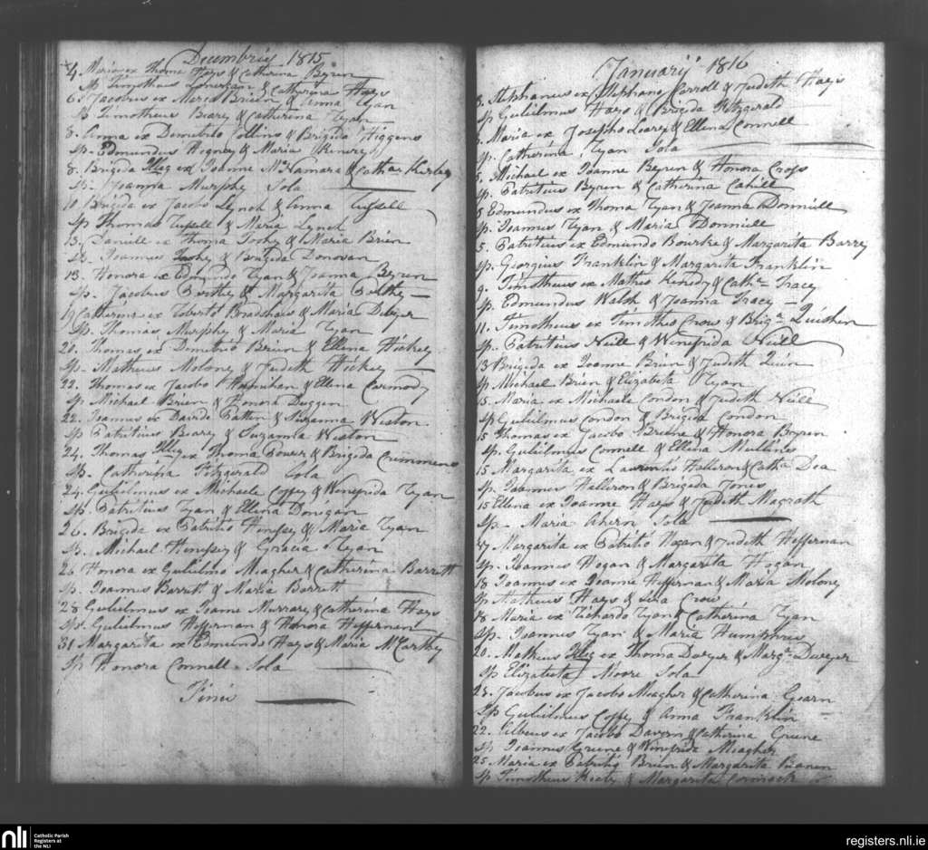 Pallasgreen and Templebredin; County of Limerick, Tipperary; Diocese of Cashel and Emly. Baptisms, Dec. 1815 to Jan. 1816