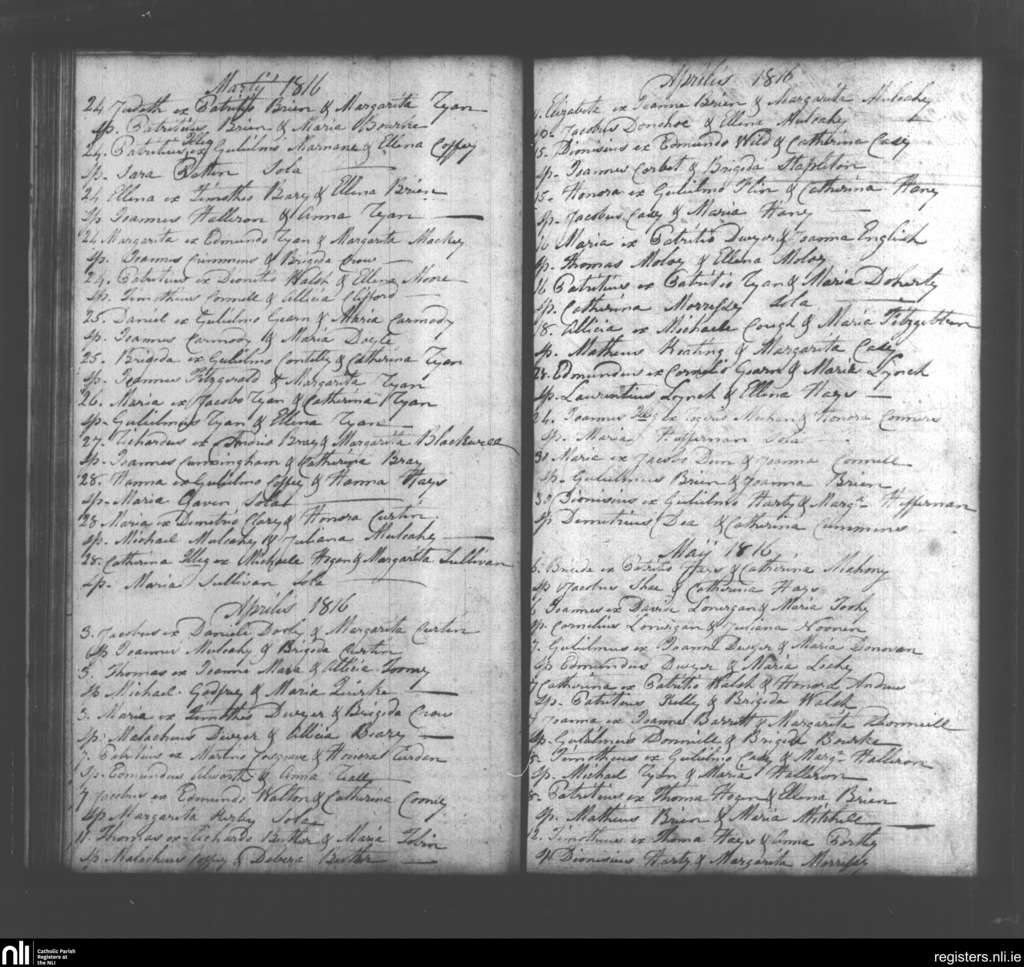 Pallasgreen and Templebredin; County of Limerick, Tipperary; Diocese of Cashel and Emly. Baptisms, Mar. 1816 to May 1816