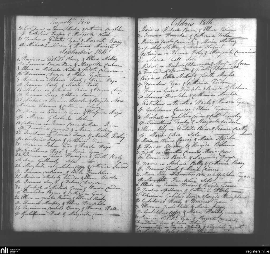 Pallasgreen and Templebredin; County of Limerick, Tipperary; Diocese of Cashel and Emly. Baptisms, Aug. 1816 to Oct. 1816