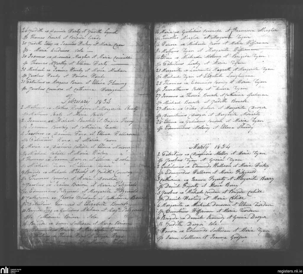 Pallasgreen and Templebredin; County of Limerick, Tipperary; Diocese of Cashel and Emly. Baptisms, Jan. 1834 to Mar. 1834
