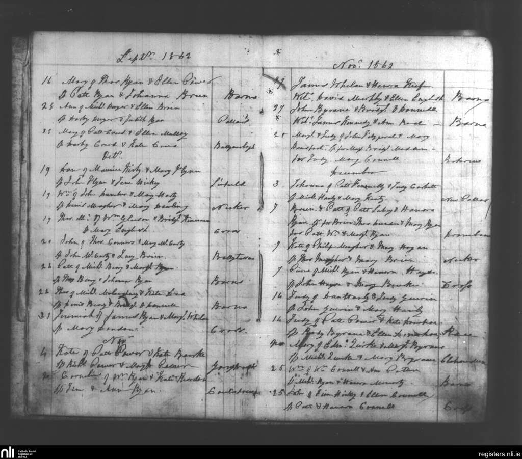 Pallasgreen and Templebredin; County of Limerick, Tipperary; Diocese of Cashel and Emly. Baptisms, Sep. 1862 to Dec. 1862