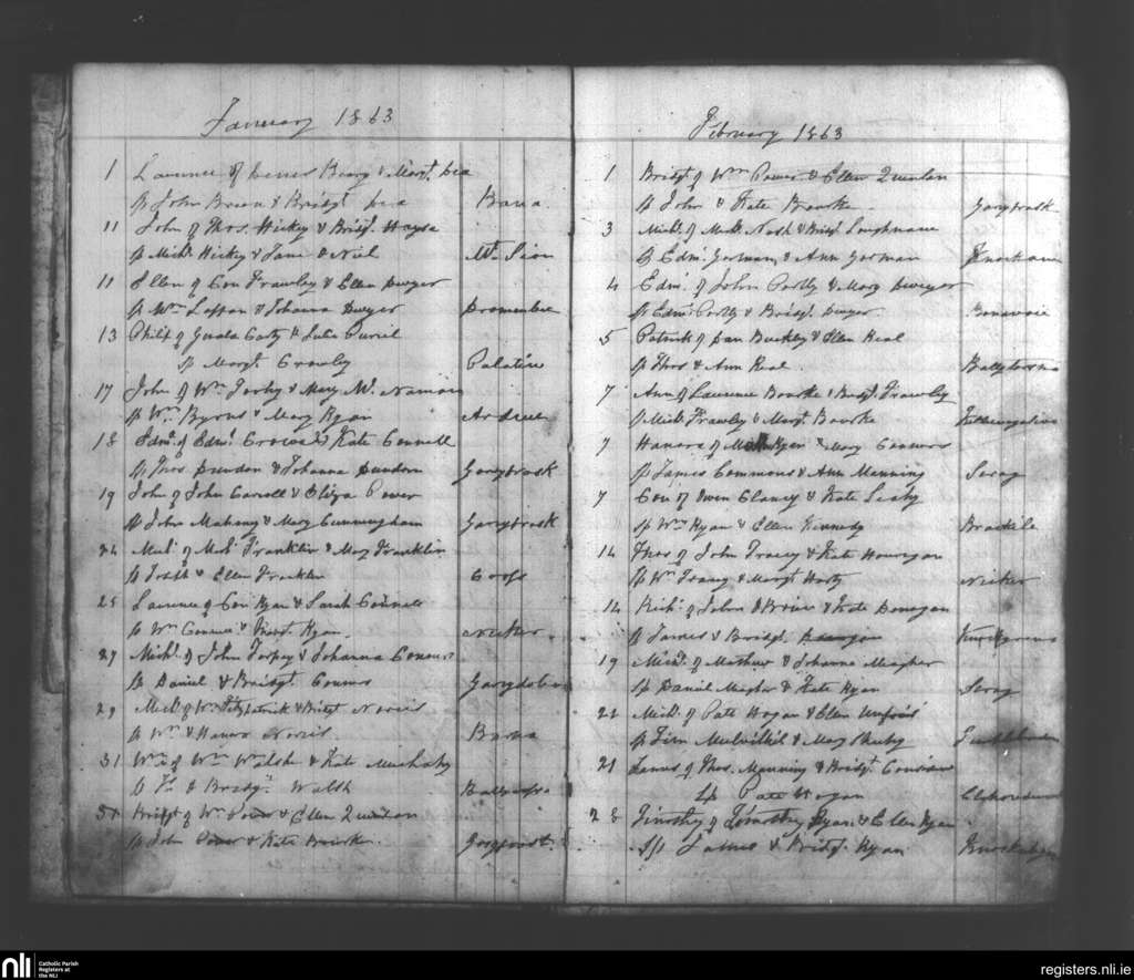 Pallasgreen and Templebredin; County of Limerick, Tipperary; Diocese of Cashel and Emly. Baptisms, Jan. 1863 to Feb. 1863