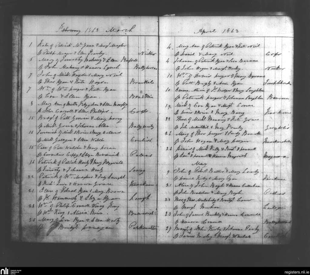 Pallasgreen and Templebredin; County of Limerick, Tipperary; Diocese of Cashel and Emly. Baptisms, Mar. 1863 to May 1863
