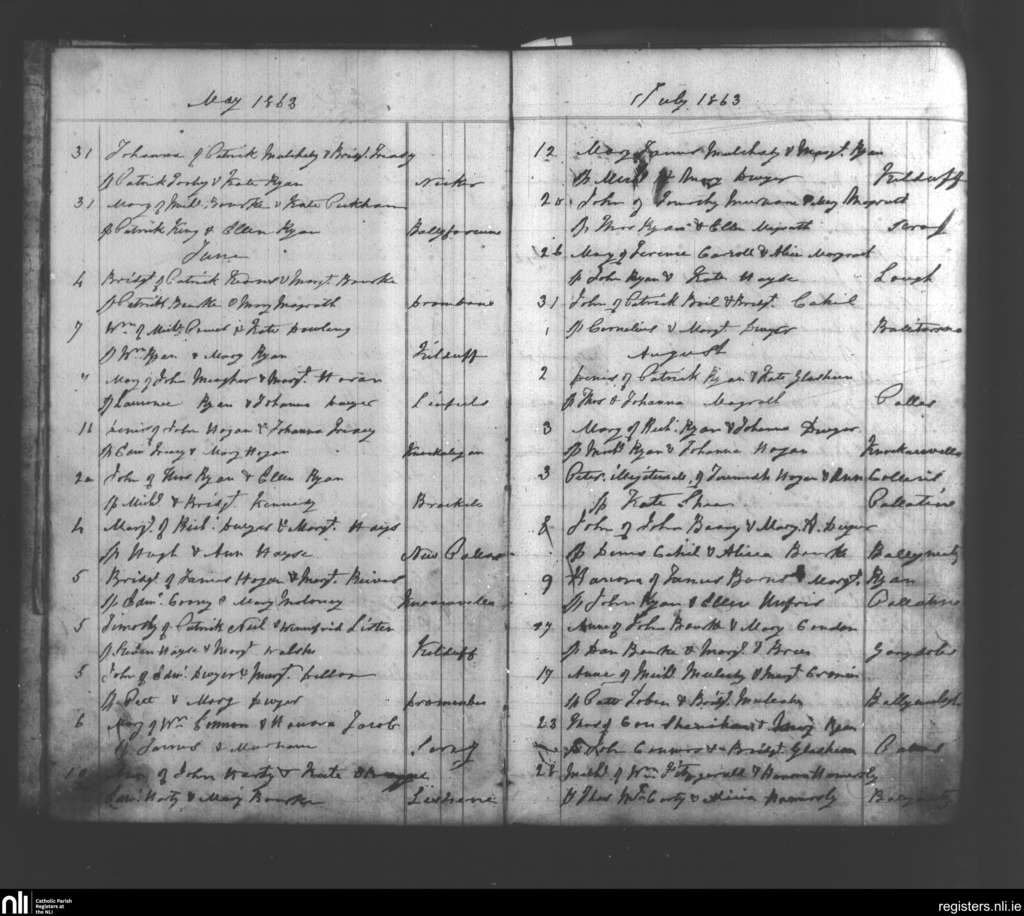 Pallasgreen and Templebredin; County of Limerick, Tipperary; Diocese of Cashel and Emly. Baptisms, May 1863 to Aug. 1863