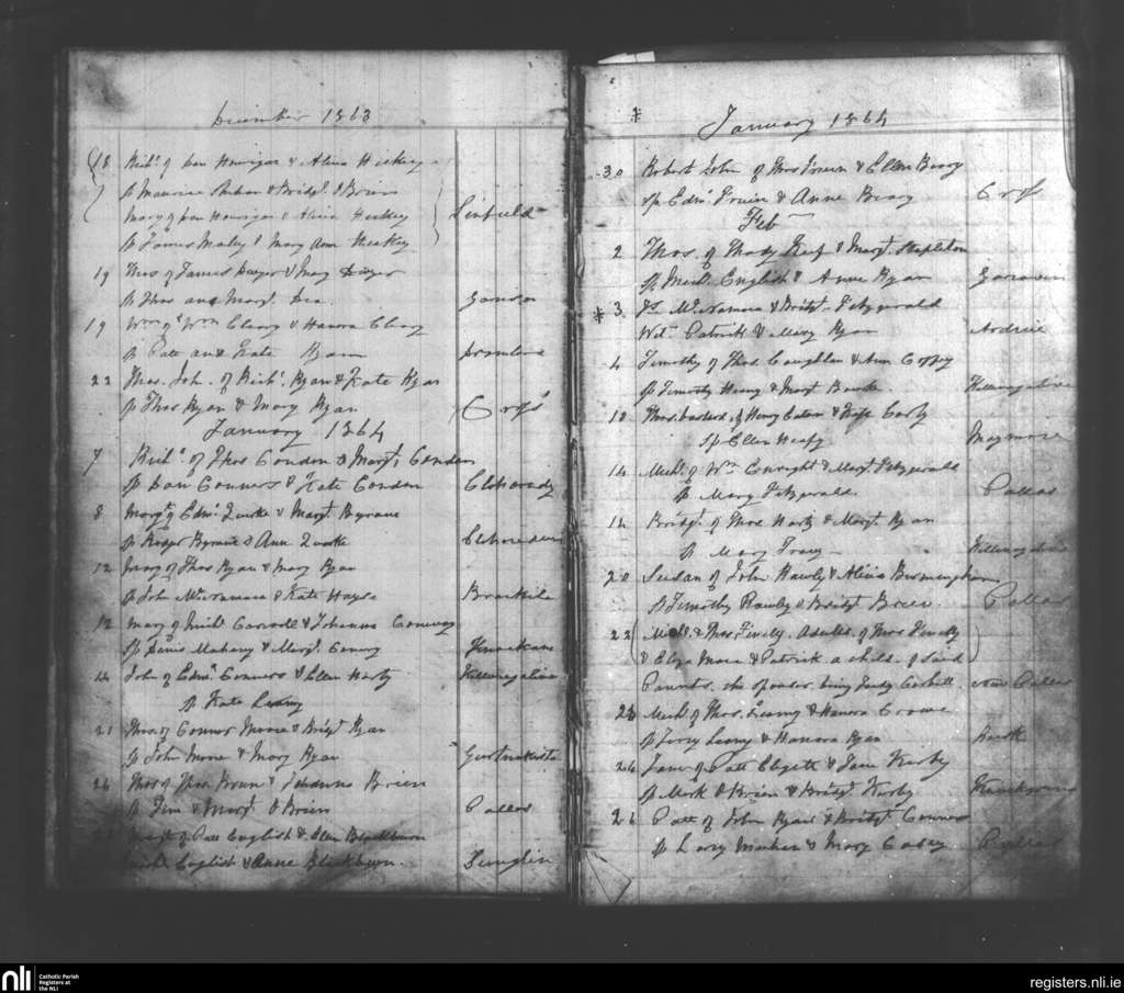 Pallasgreen and Templebredin; County of Limerick, Tipperary; Diocese of Cashel and Emly. Baptisms, Dec. 1863 to Feb. 1864