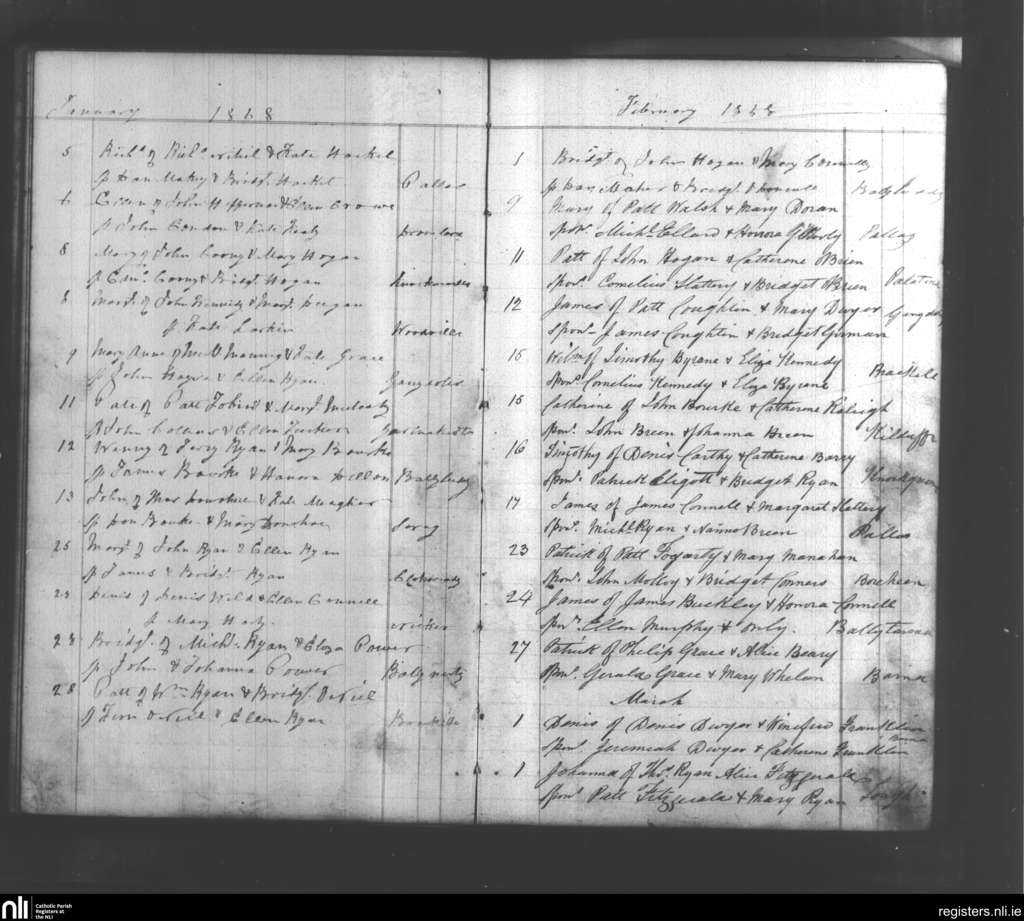 Pallasgreen and Templebredin; County of Limerick, Tipperary; Diocese of Cashel and Emly. Baptisms, Jan. 1868 to Mar. 1868