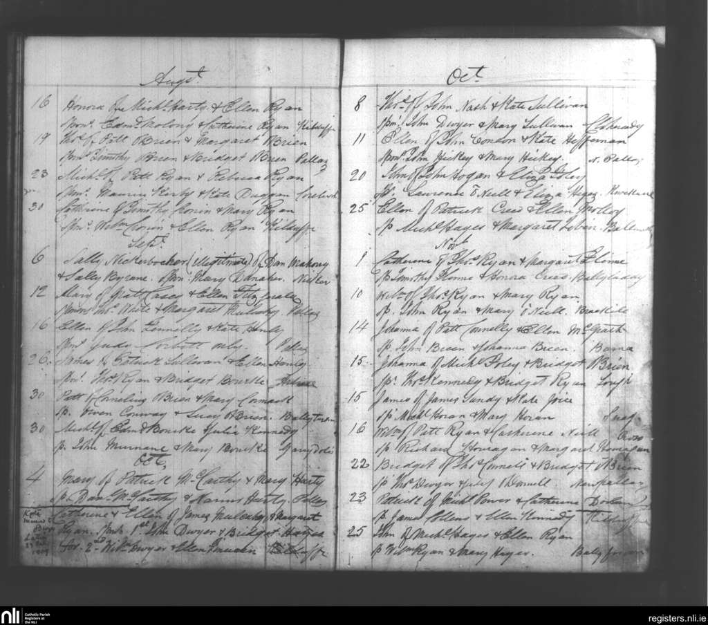 Pallasgreen and Templebredin; County of Limerick, Tipperary; Diocese of Cashel and Emly. Baptisms, Aug. 1868 to Nov. 1868