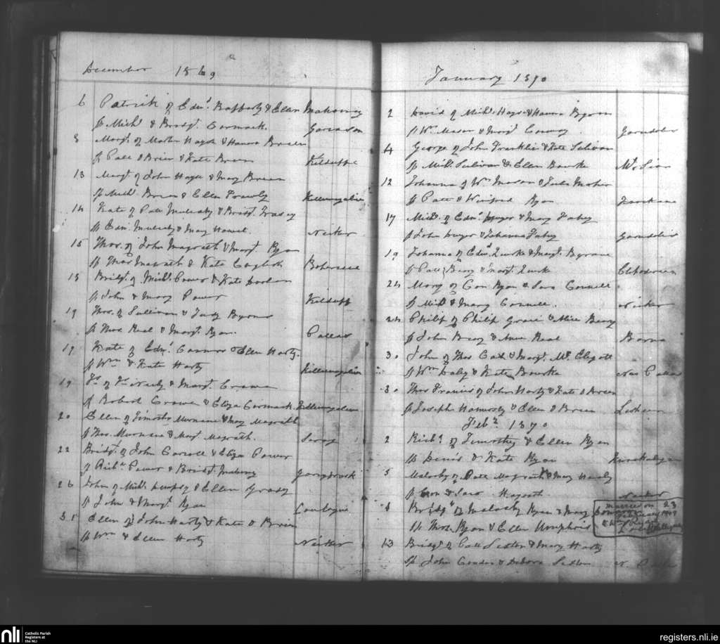 Pallasgreen and Templebredin; County of Limerick, Tipperary; Diocese of Cashel and Emly. Baptisms, Dec. 1869 to Feb. 1870