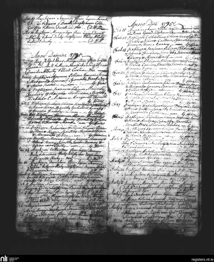 Castlelyons; County of Cork; Diocese of Cloyne. Baptisms, Dec. 1794 to Apr. 1795
