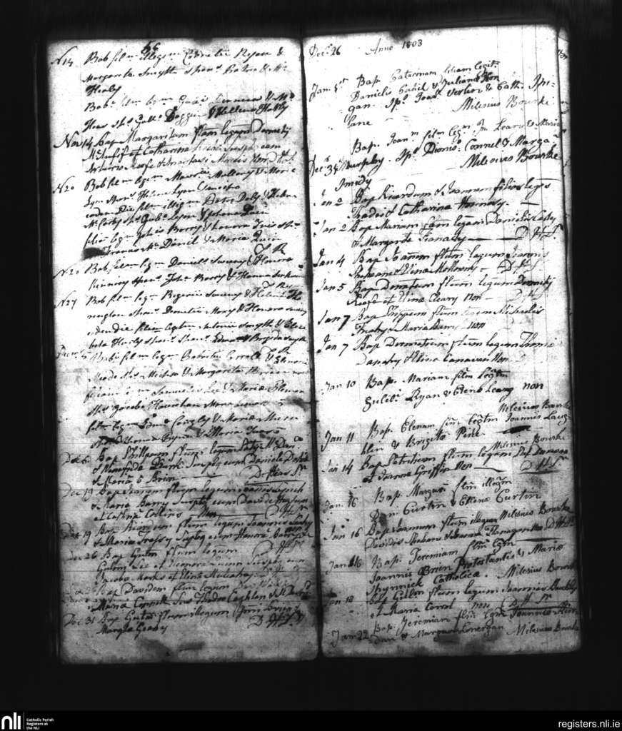 Castlelyons; County of Cork; Diocese of Cloyne. Baptisms, Nov. 1802 to Jan. 1803