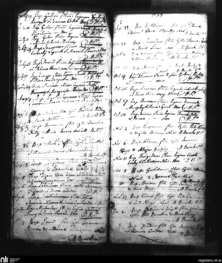 Castlelyons; County of Cork; Diocese of Cloyne. Baptisms, July 1803 to Dec. 1803