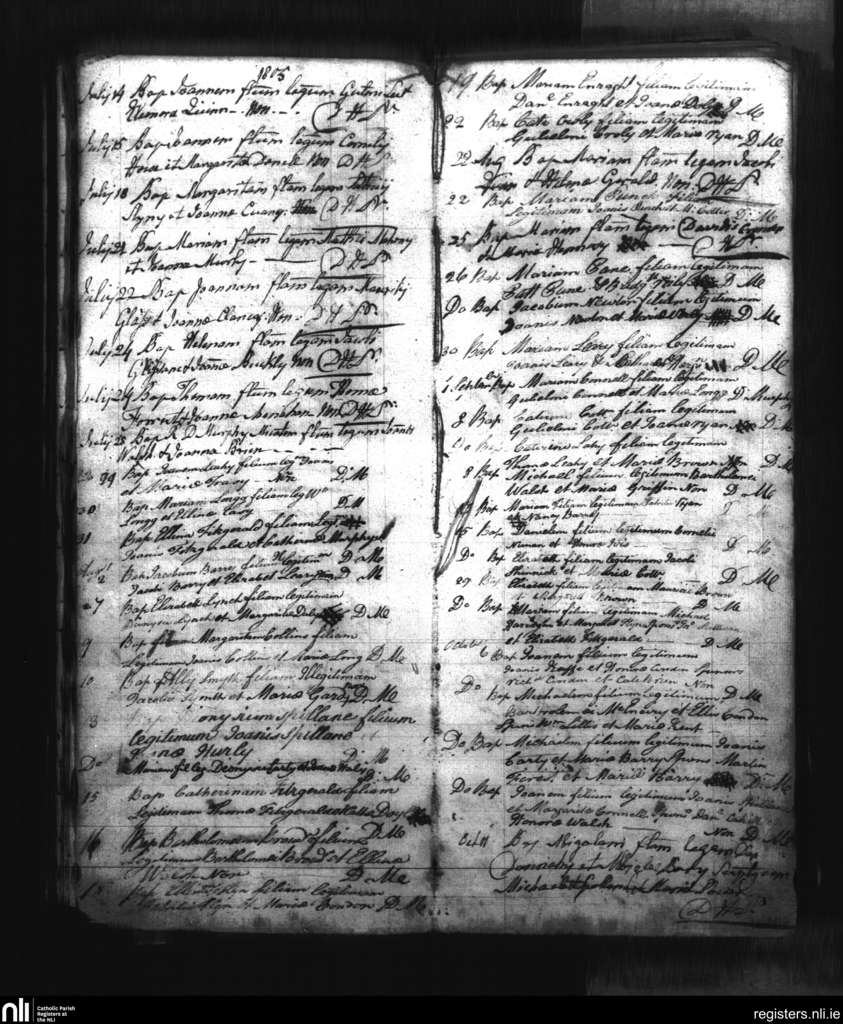 Castlelyons; County of Cork; Diocese of Cloyne. Baptisms, July 1805 to Oct. 1805