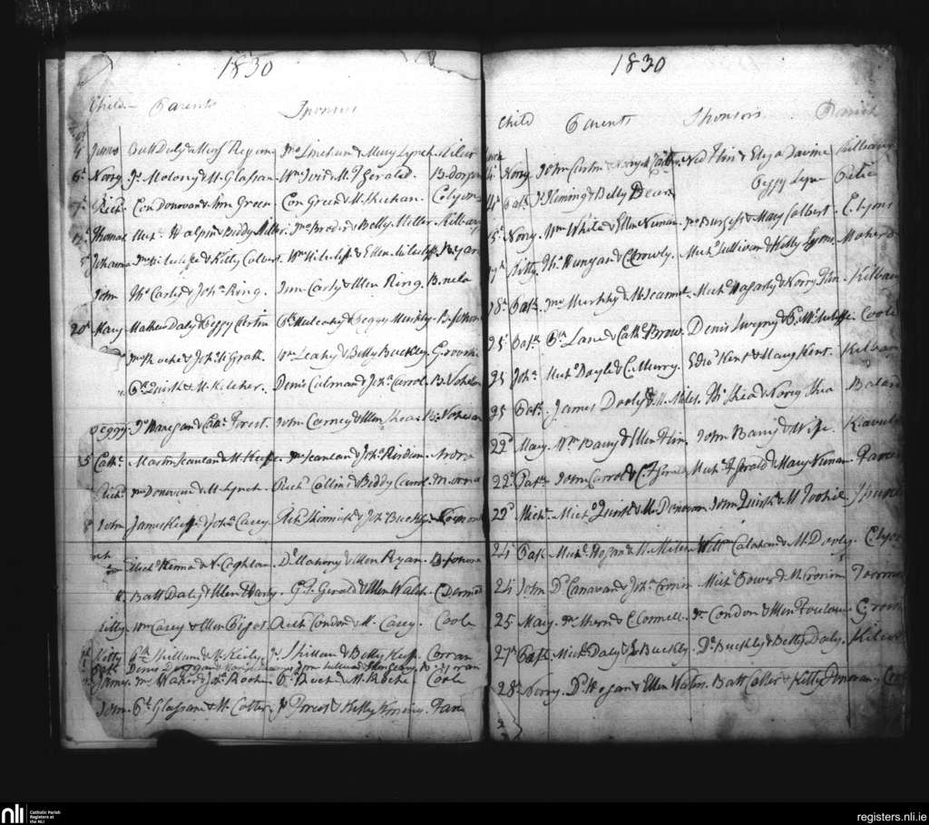 Castlelyons; County of Cork; Diocese of Cloyne. Baptisms, Feb. 1830 to Mar. 1830