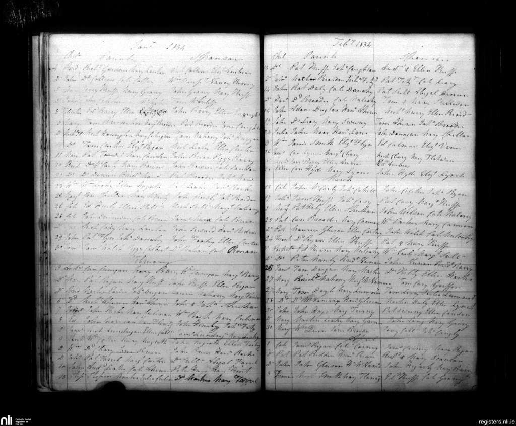 Castlelyons; County of Cork; Diocese of Cloyne. Baptisms, Jan. 1834 to Apr. 1834