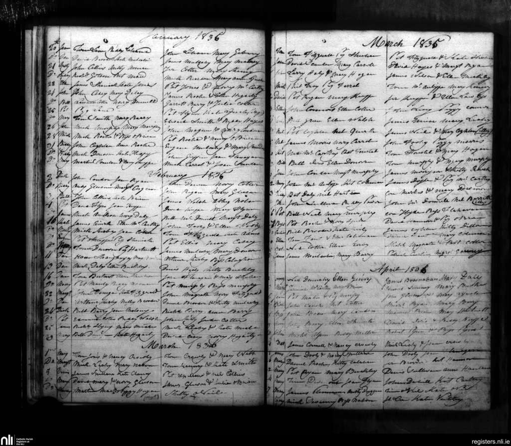 Castlelyons; County of Cork; Diocese of Cloyne. Baptisms, Jan. 1836 to Apr. 1836