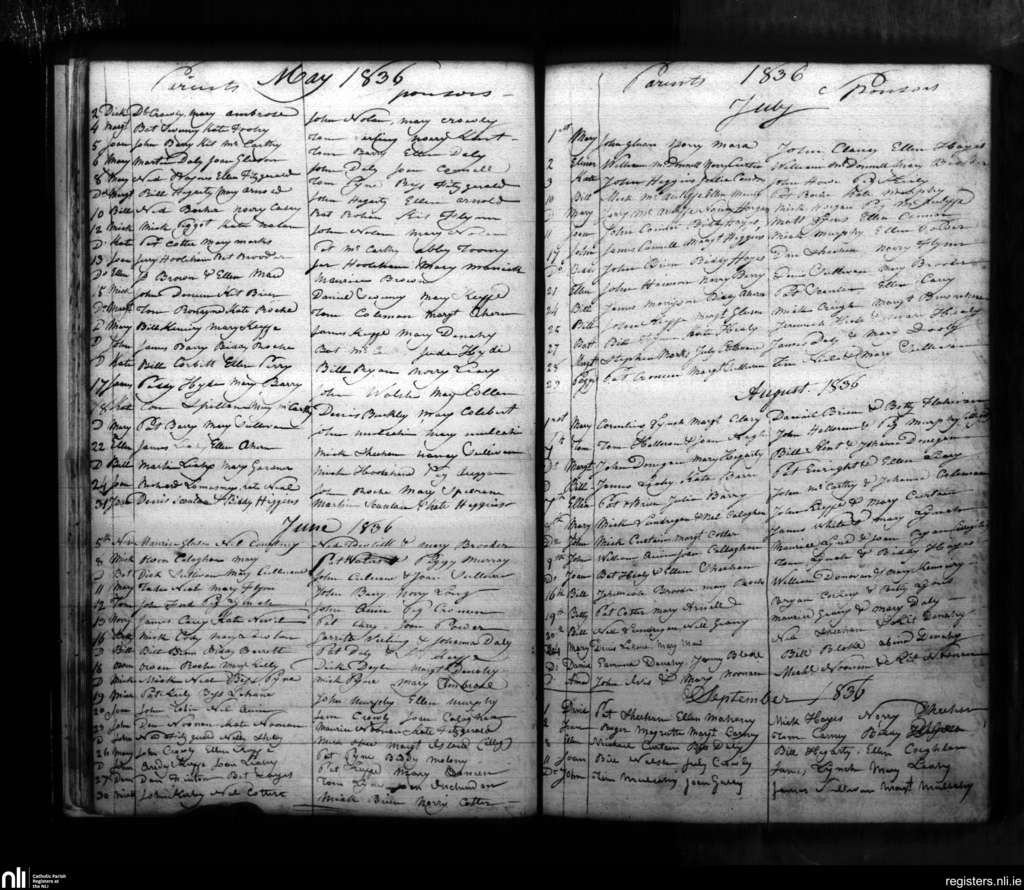 Castlelyons; County of Cork; Diocese of Cloyne. Baptisms, May 1836 to Sep. 1836
