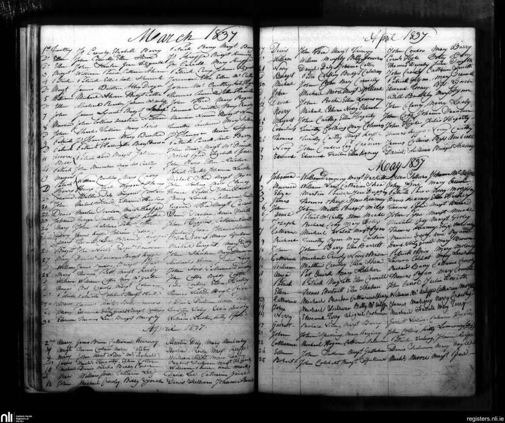 Castlelyons; County of Cork; Diocese of Cloyne. Baptisms, Mar. 1837 to May 1837