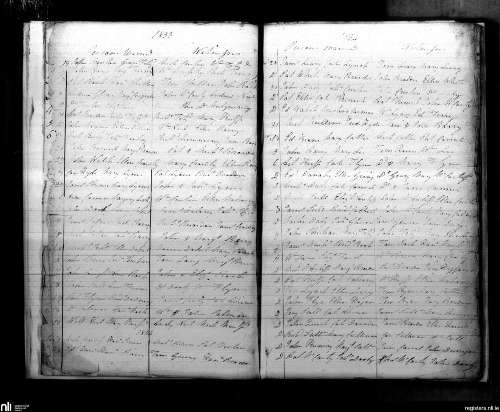 Castlelyons; County of Cork; Diocese of Cloyne. Marriages, Feb. 1833 to Feb. 1834