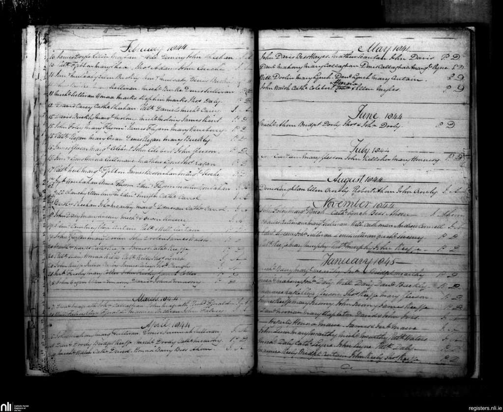 Castlelyons; County of Cork; Diocese of Cloyne. Marriages, Feb. 1844 to Jan. 1845