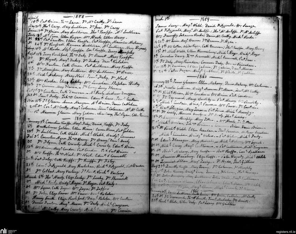 Castlelyons; County of Cork; Diocese of Cloyne. Marriages, Apr. 1858 to Jan. 1861