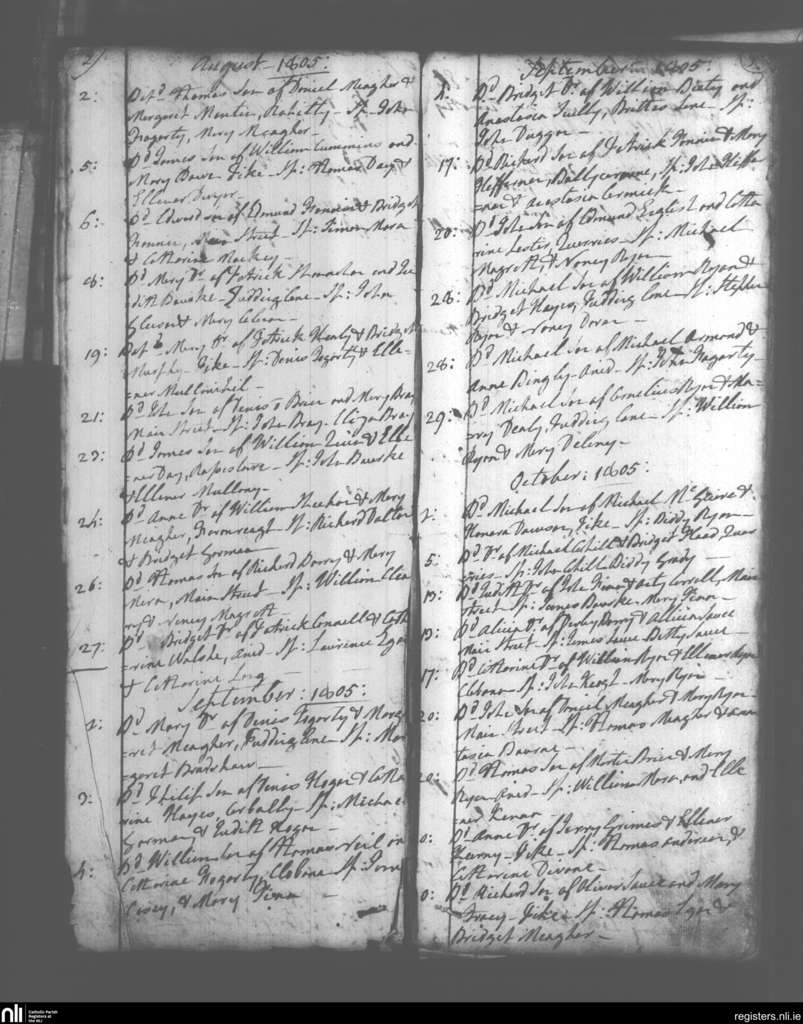 Thurles; County of Tipperary; Diocese of Cashel and Emly. Baptisms, Aug. 1805 to Oct. 1805