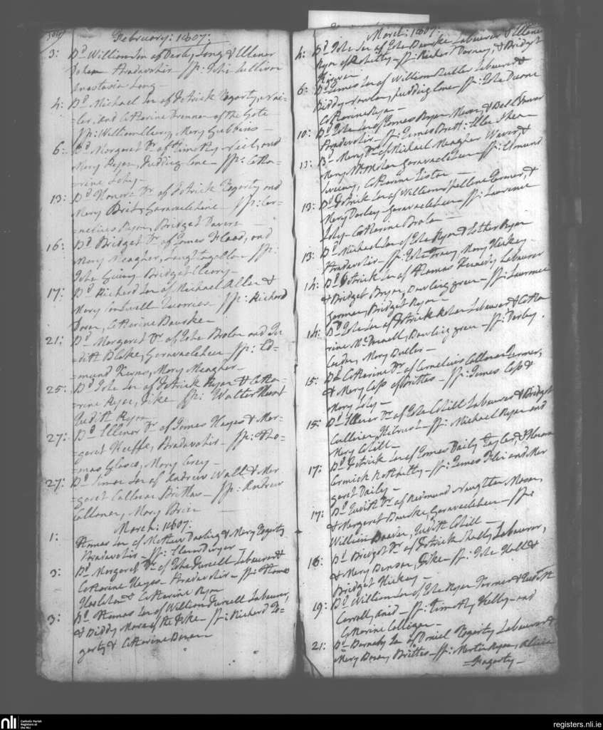 Thurles; County of Tipperary; Diocese of Cashel and Emly. Baptisms, Feb. 1807 to Mar. 1807