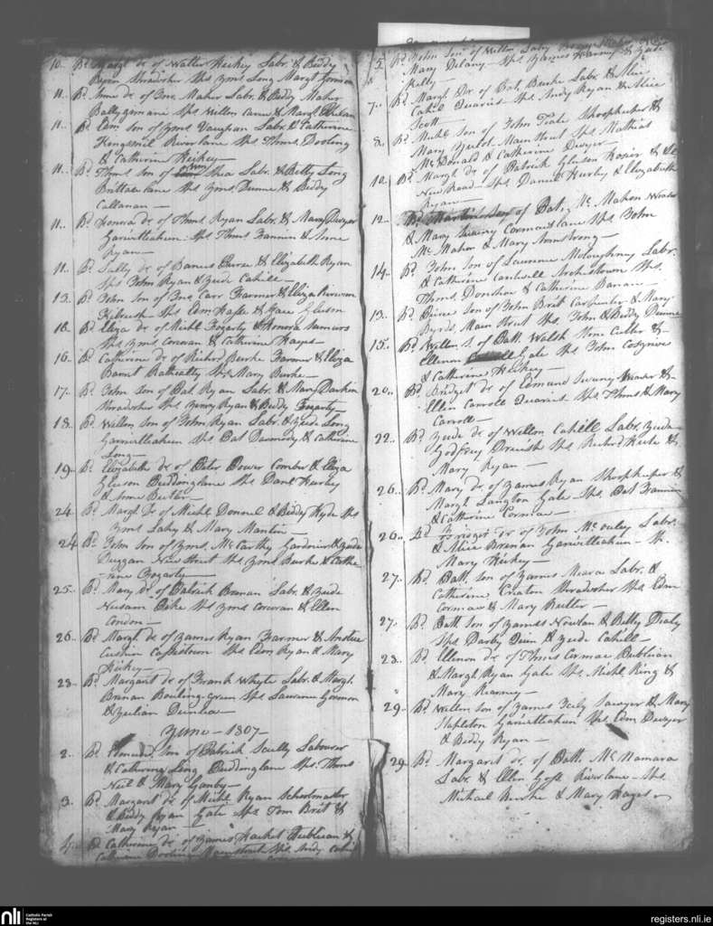 Thurles; County of Tipperary; Diocese of Cashel and Emly. Baptisms, May 1807 to June 1807