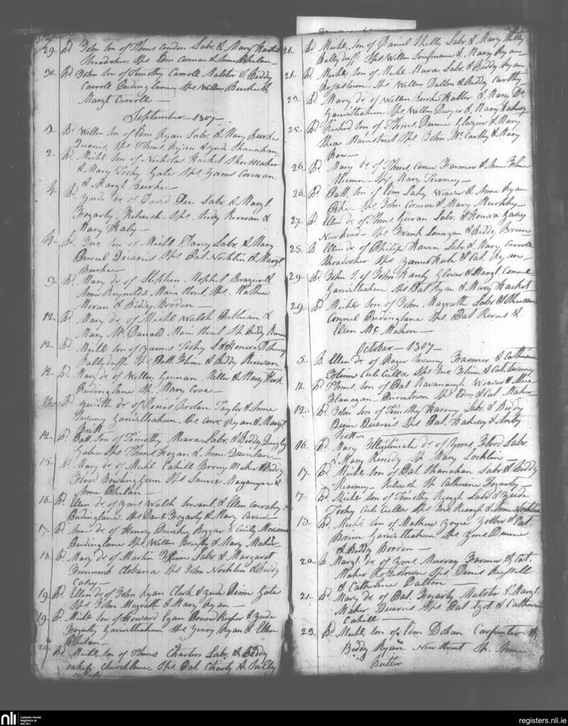 Thurles; County of Tipperary; Diocese of Cashel and Emly. Baptisms, Aug. 1807 to Oct. 1807