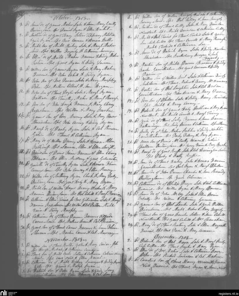 Thurles; County of Tipperary; Diocese of Cashel and Emly. Baptisms, Oct. 1808 to Dec. 1808