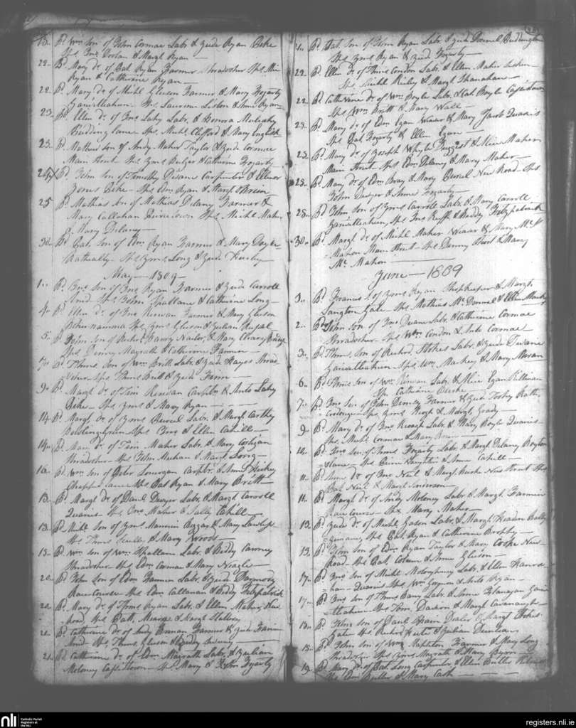 Thurles; County of Tipperary; Diocese of Cashel and Emly. Baptisms, Apr. 1809 to June 1809